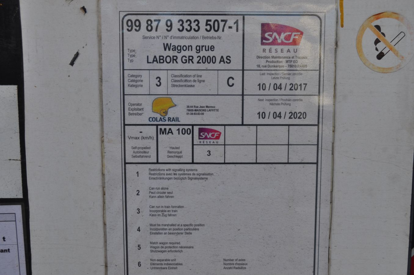 Voici un wagon grue d'Amec Spie baptisé "La laborieuse"