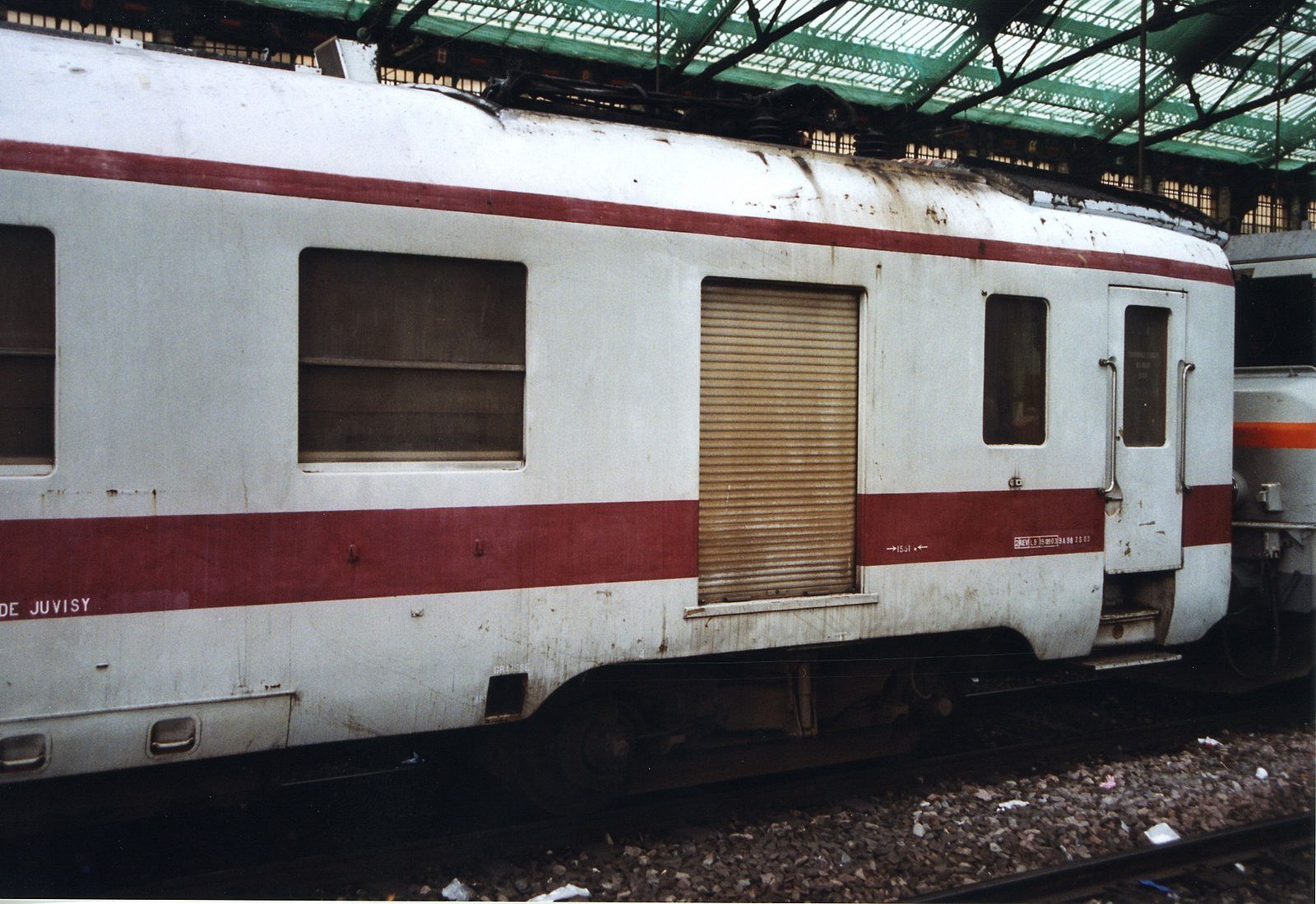 Voici quelques images de l'ex DEV AO devenue wagon graisseur de caténaire 80 87 979 0 402-2 RO, saisi en Gare de Lyon Novembre 2003.