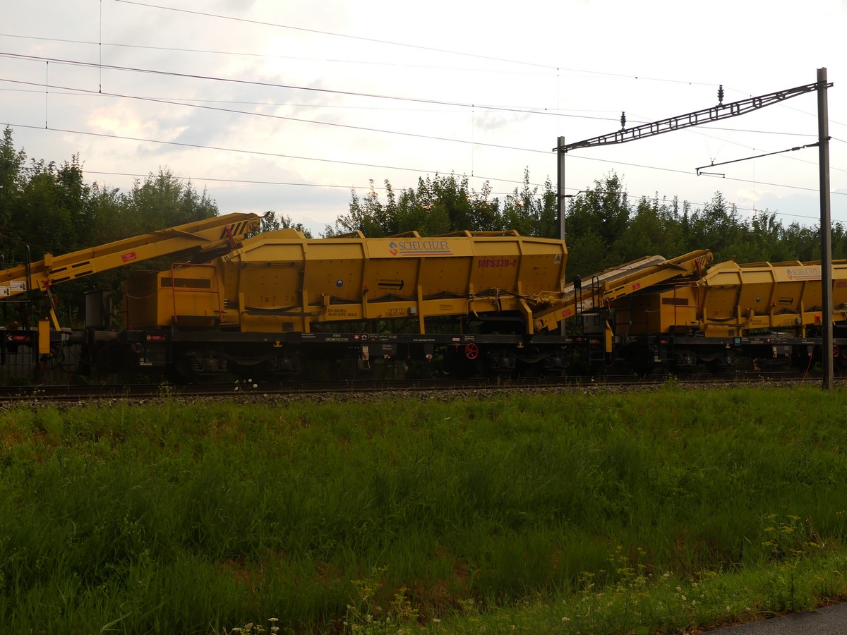 La cribleuse charge les criblures dans des VAD Scheuchzer et Vanoli (pas de photos désolé). Première fois que je vois cette configuration en Suisse.
