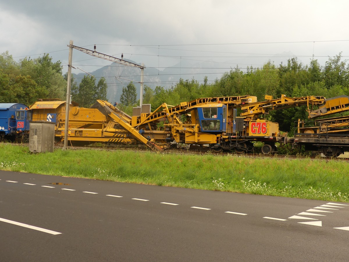 Les CFF renouvelle actuellement la voie 2 entre Villeneuve et Roche. la base travaux est principalement installée à St-Triphon, mais du matériel est également garé à Roche.