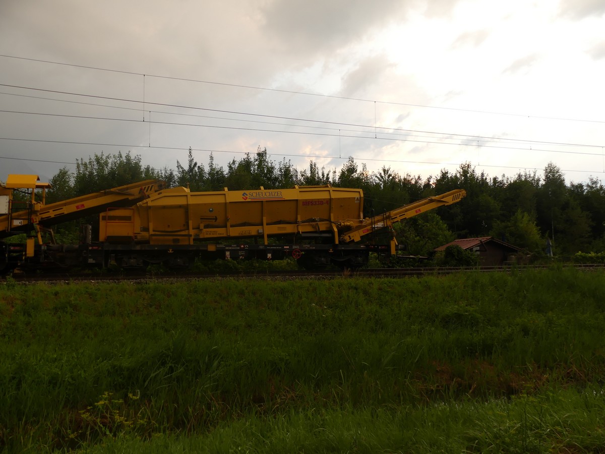 La cribleuse charge les criblures dans des VAD Scheuchzer et Vanoli (pas de photos désolé). Première fois que je vois cette configuration en Suisse.