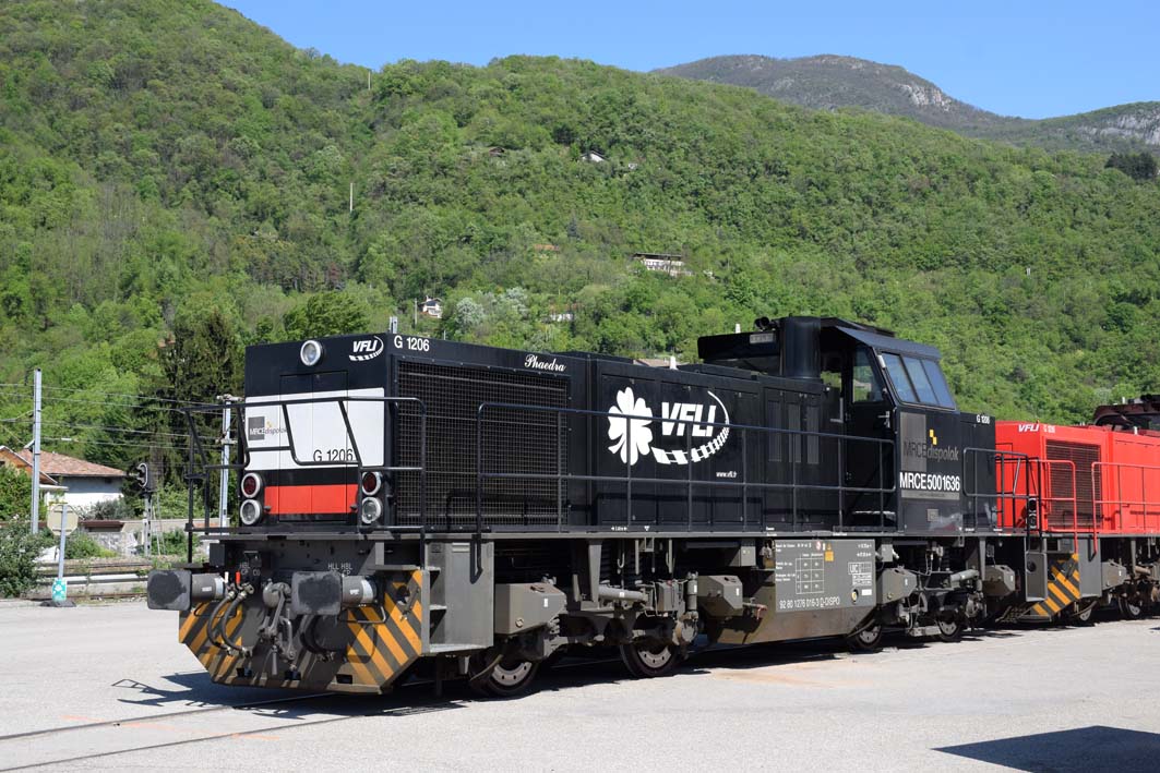 le RVB actuellement en cours Moirans-Saint André le Gaz emploie au moins 3 locomotives G1206 louées par VFLI à MRCE, dont 2 ont un grand logo blanc ressortant bien sur le noir de la Rosco; ces deux locomotives avec logo de l'opérateur sont les 500 1636 et 1650.