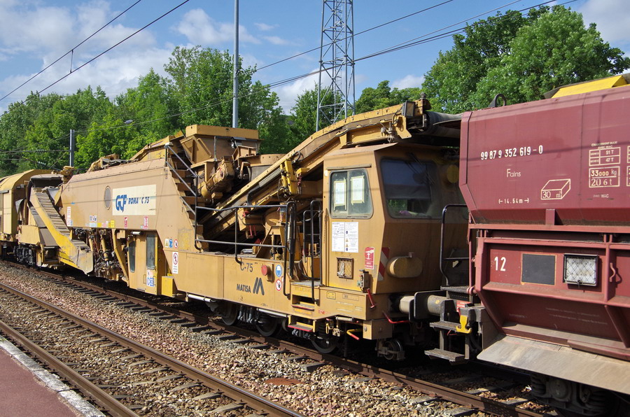 Dégarnisseuse - C75 - 99 87 9 314 507-4 - GCF de passage en gare de Poix de Picardie le 30-07-2019