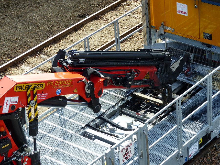 Espérons que la grue n'a pas trop souffert, en effet l'extrémité des bras repliés était au dessus de l'incendie. Il y a tout plein de flexibles hydrauliques, de capteurs plus les plaquettes teflon pour les coulisses qui n'ont pas dû apprécier les flammes. On voit que la chaise de support de la grue est bien cramée.