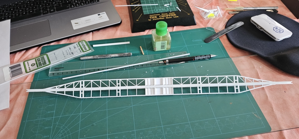 Voici l'avancée du jour, un coté de la structure de base... et l'arête dorsale de la poutre