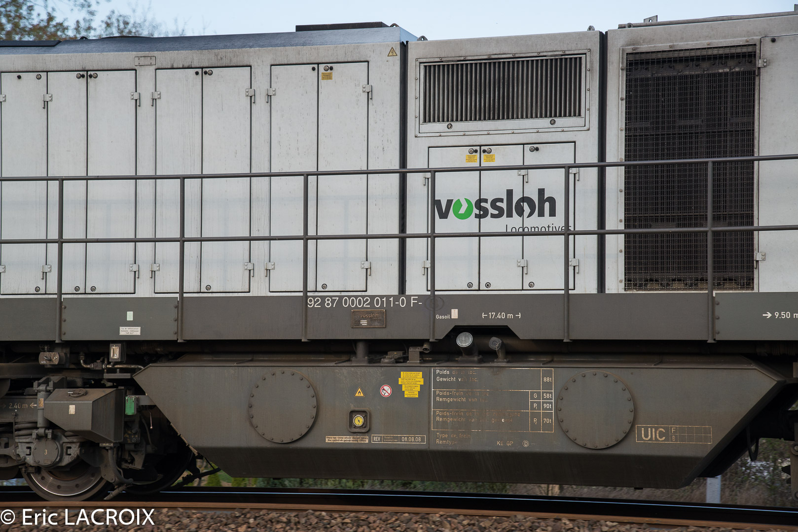 G 2000 BB 5001603 - 92 87 0 002 011-0 F - ETMF en tête du train de dégarnissage Matisa C-75 - 99 87 9 314 507-4 GCF Roma passe à Villeperrot (89) pour rejoindre la base de travaux de St Florentin. Avril 2017.