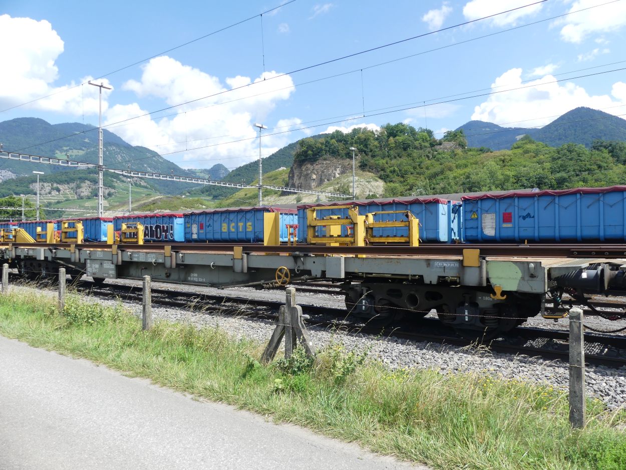 Voici l'un des trains de transport de longs rails de 108 m, numéro 13. Ces trains peuvent transporter des longs rails soudés de 108 m maximum, la longueur utilisée en Suisse.